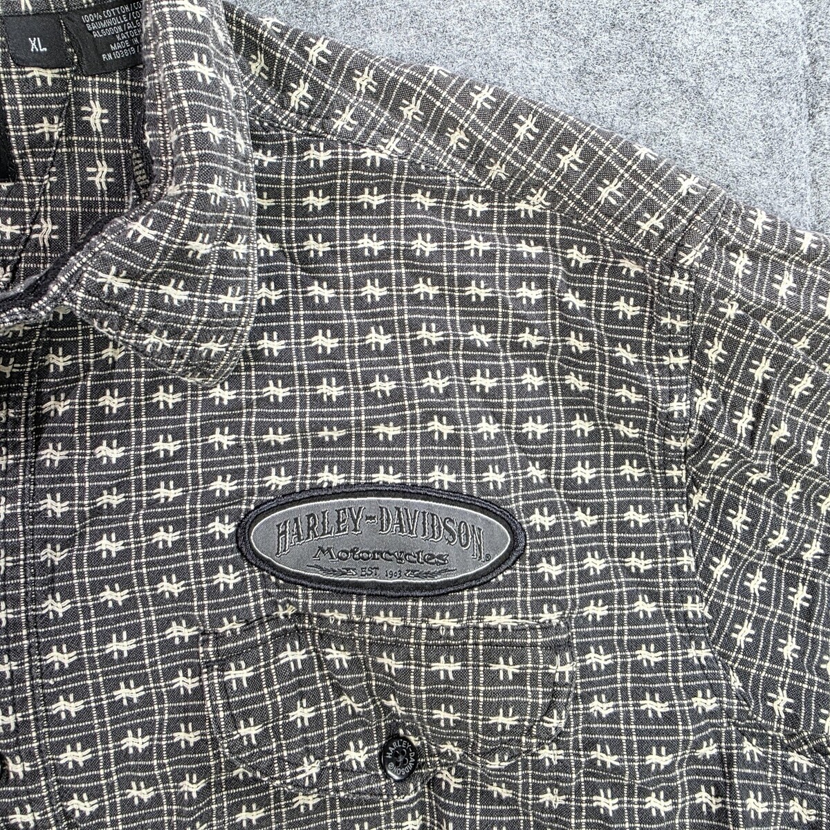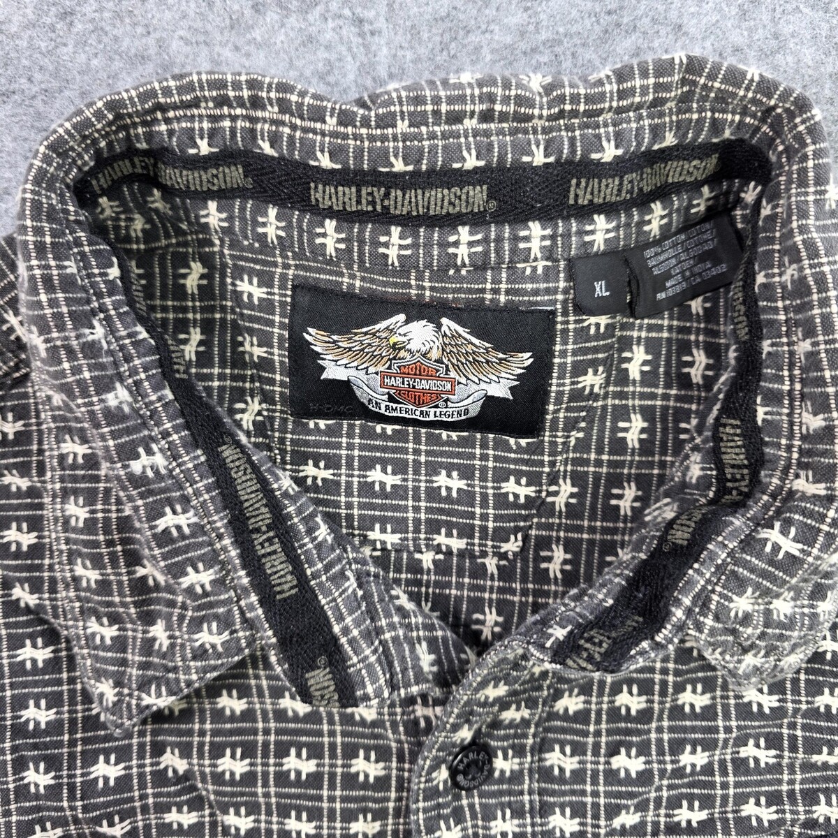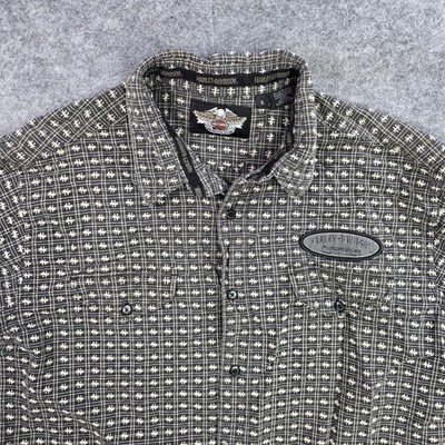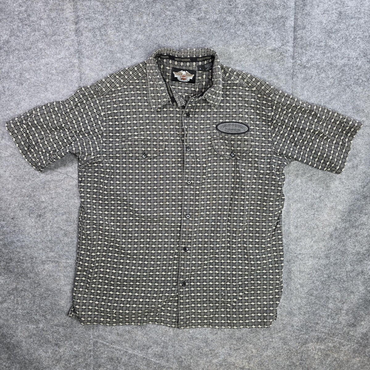 Harley-Davidson Shirt Mens XL Black White Button Down Short Sleeve Casual Cotton