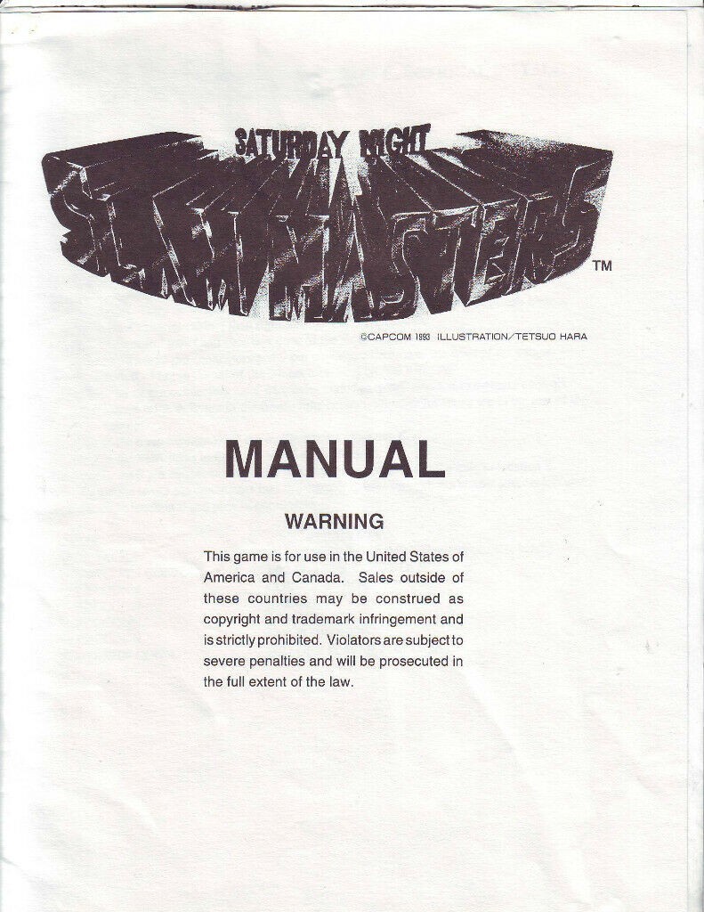 Capcom Saturday Night Slam Masters Arcade Manual 1993 Wrestling Video Game