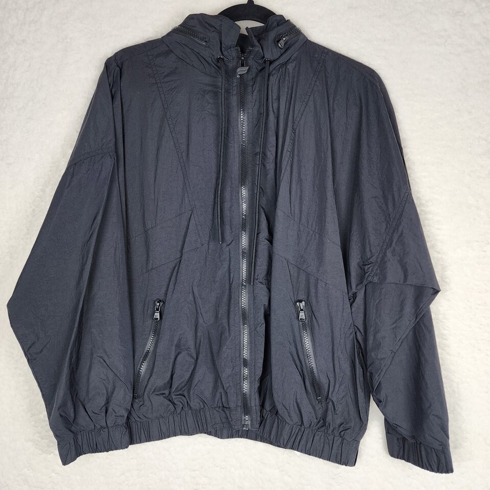 Fabletics Womens Track Jacket Oversized Hood Black Rain Hiking Campin Size Small