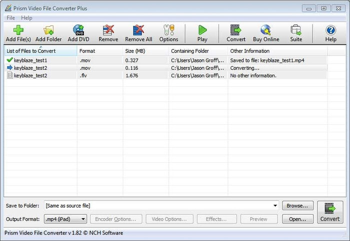 NCH Software Prism Video Converter convert AVI MPG4 for Windows