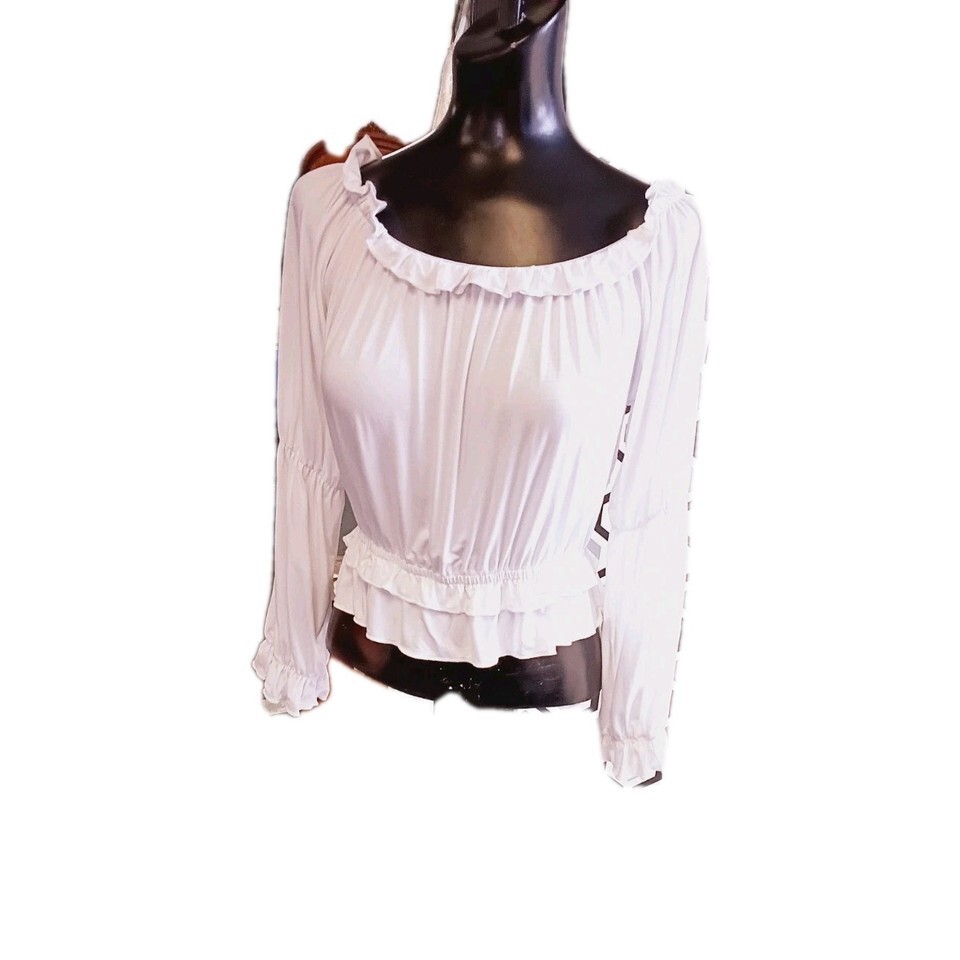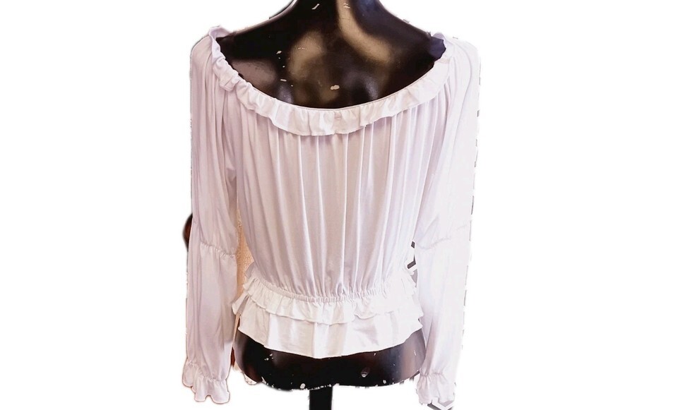White Off The Shoulder Coquette Blouse With Ruffles Size Small Fairycore Peasant