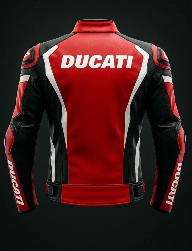 Red, Black and White Ducati MotoGP-Inspired Motorcycle Racing Leather Jacket