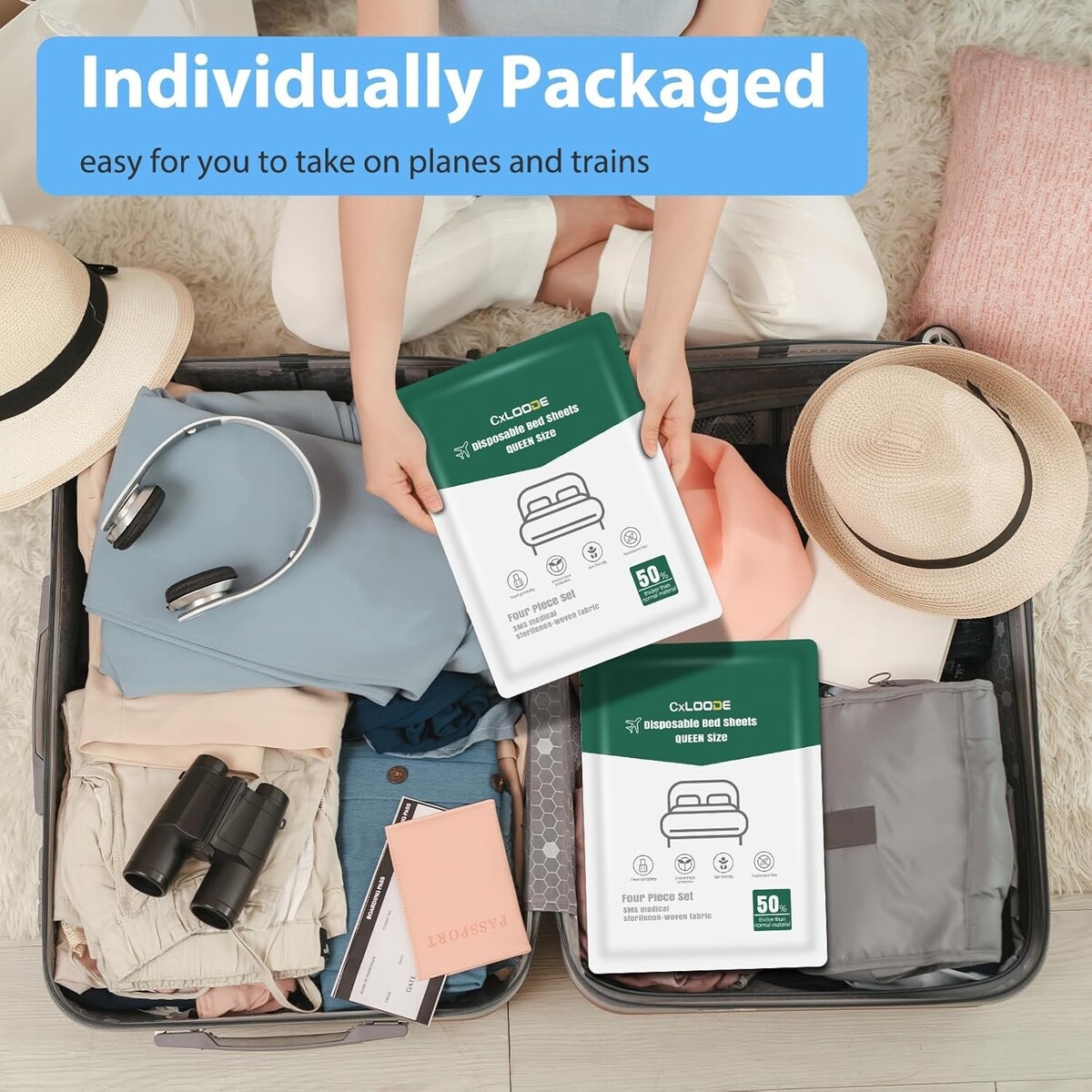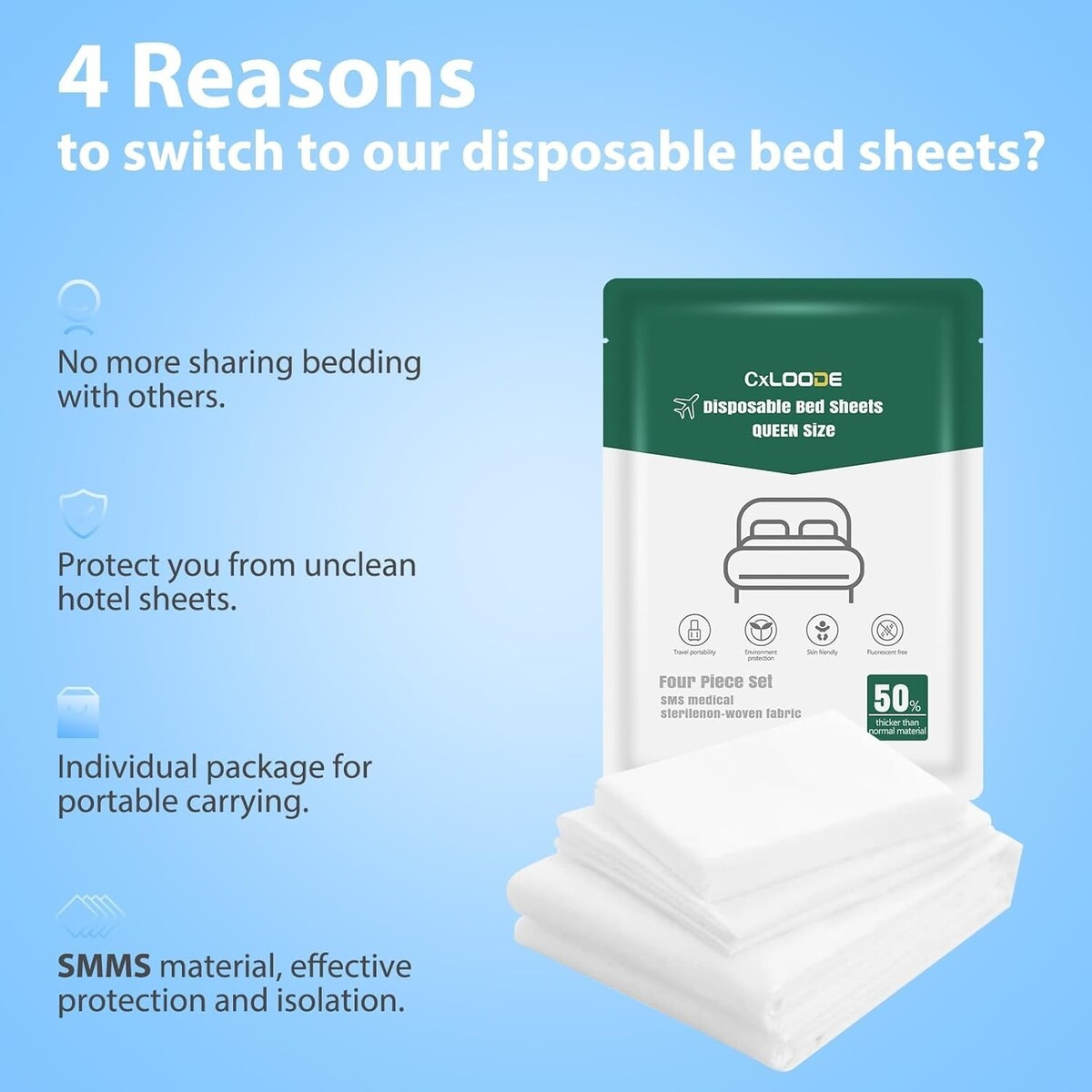 Travel-Ready Disposable Queen Bed Sheets with 4 Pillowcases - Clean & Convenient