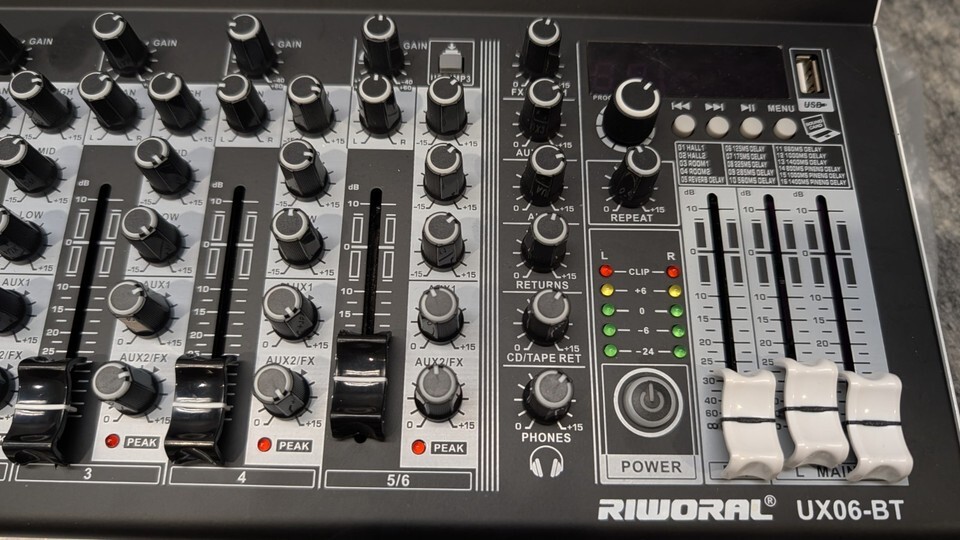 Riworal 6 Channel Audio Interface Sound Board Mixing Console 16-Bit UX06-BT