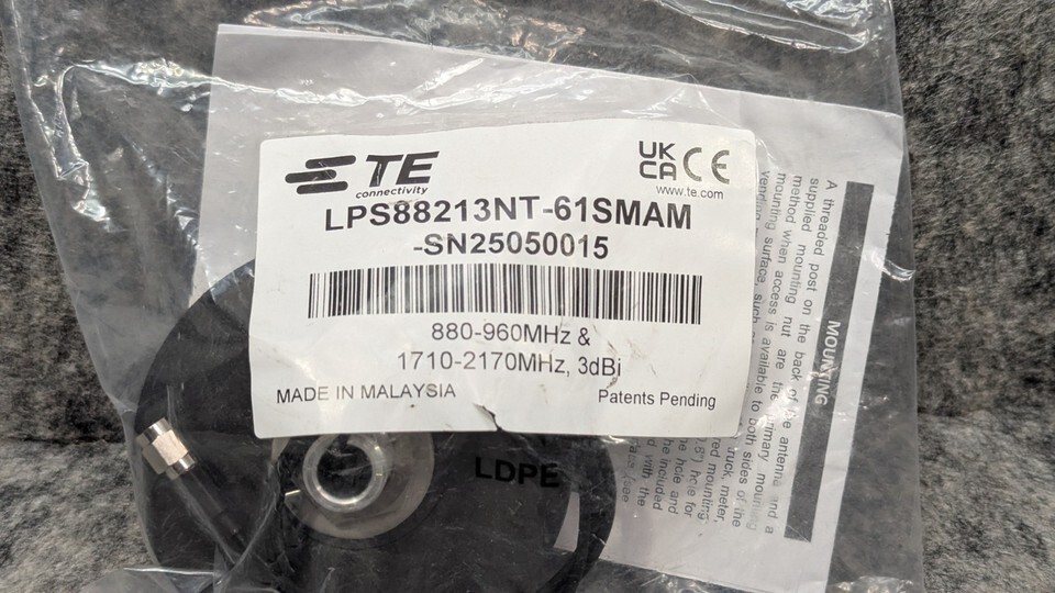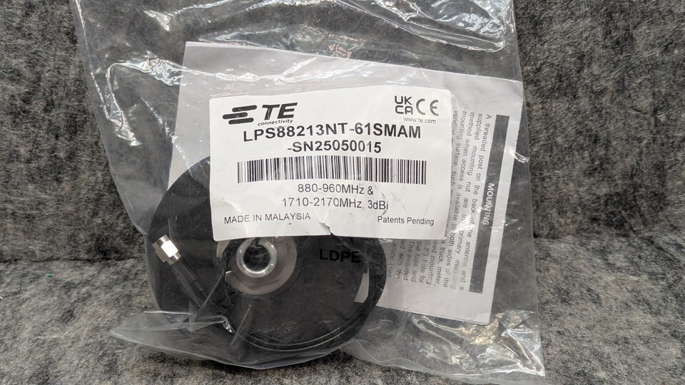 TE Connectivity LPS88213NT-61SMAM Dome/Puck Antenna 880 MHz - 960 MHz, 3db New