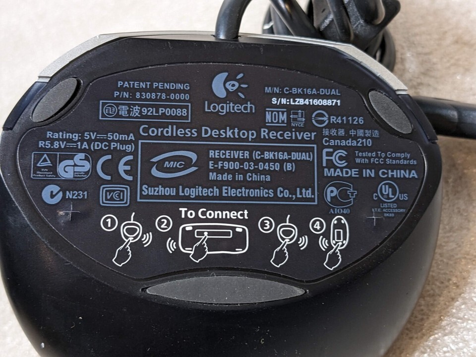 Logitech C-BK16A-DUAL 830878-0000 Cordless Desktop Receiver USB PS2