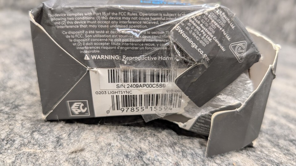 Logitech G203 Lightsync Black Wired Gaming Mouse 910-005790 New/Open Box