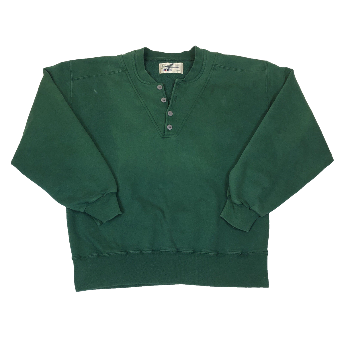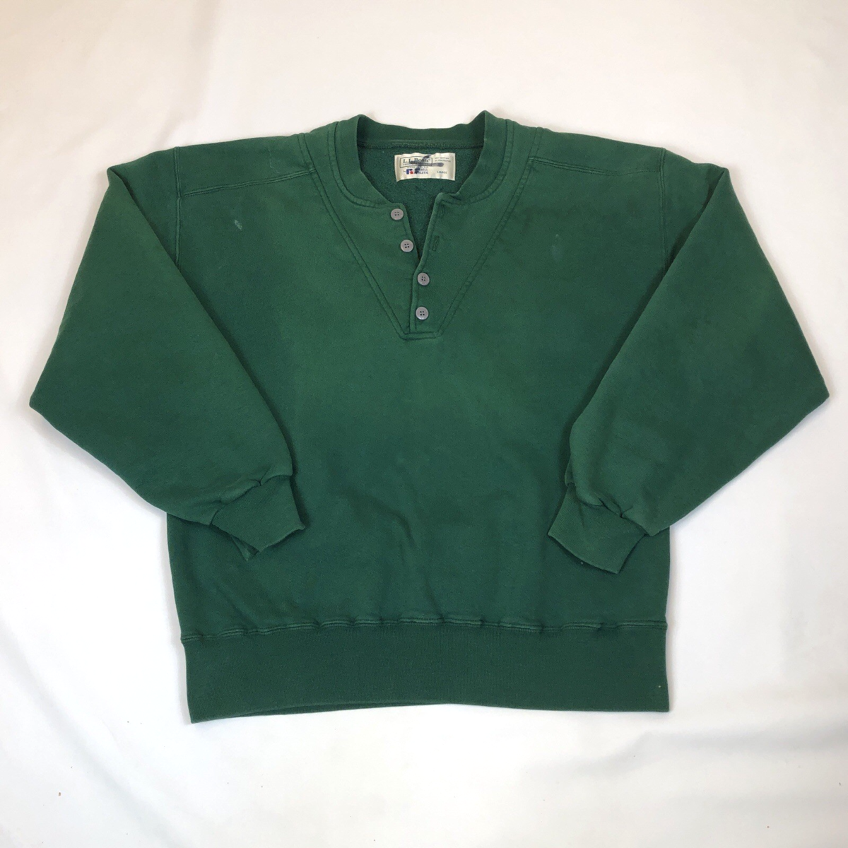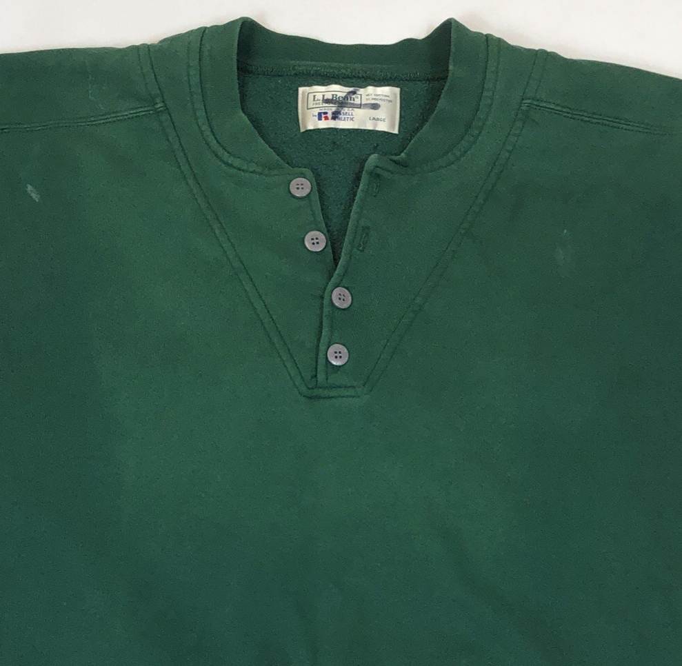 Vintage LL Bean Russell Athletic Green Henley Pullover Sweatshirt Large USA Made