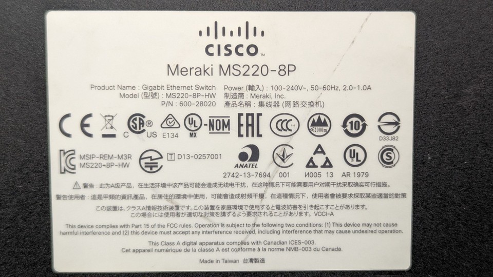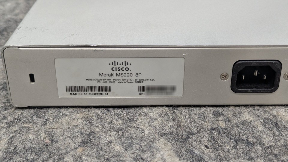 Cisco Meraki MS220-8P-HW 8 Port Desktop Ethernet Switch UNCLAIMED