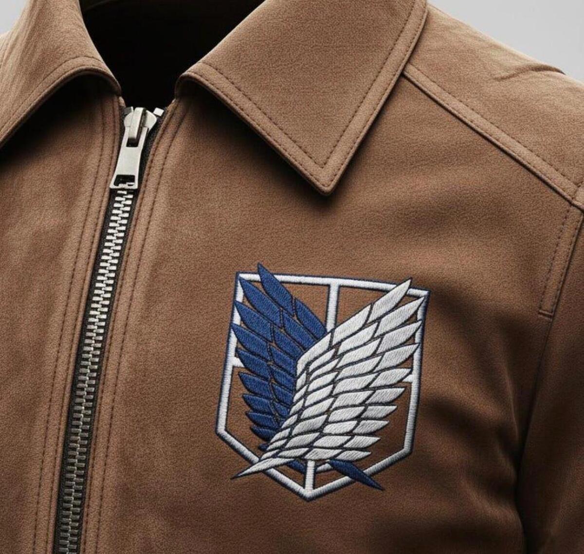 Attack on Titan Scout Regiment Jacket Brown Suede Wings of Liberty Bomber