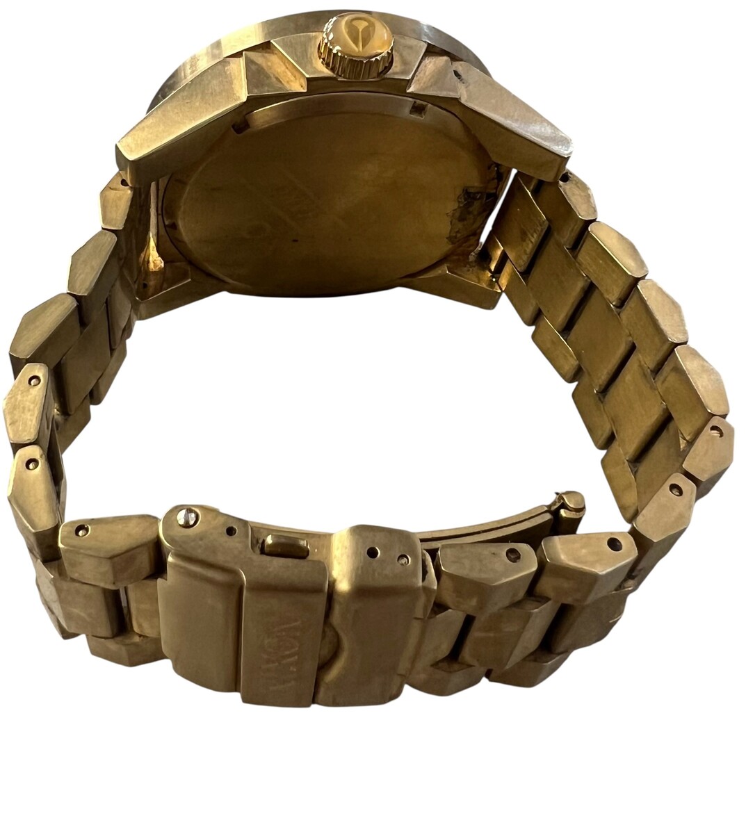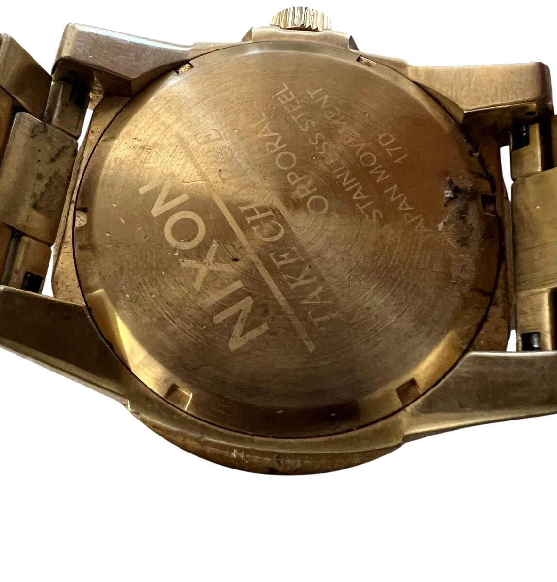 Type: Wrist watchBrand: NixonModel number: Take ChargeCase width: 55mmWeight: 119.3Bracelet length: 7"Movement type: Quartz (Battery)Case Material: Stainless SteelRunning: yesDial color: goldModel name: The CorporalCondition:Used