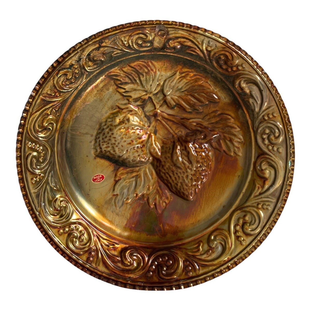 Vintage Italian Copper Strawberry Wall Plate 11 Inch Embossed Fruit Decor Made in Italy