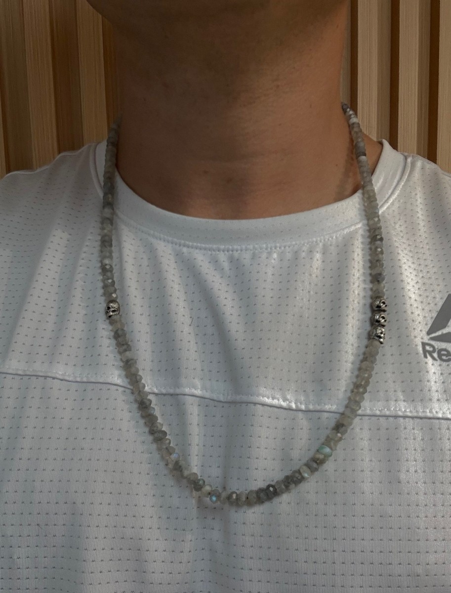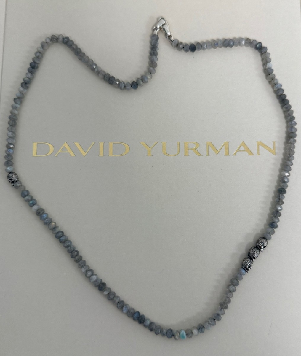 David Yurman .925 Sterling Silver Spiritual Beads Labradorite Skull Necklace 26"