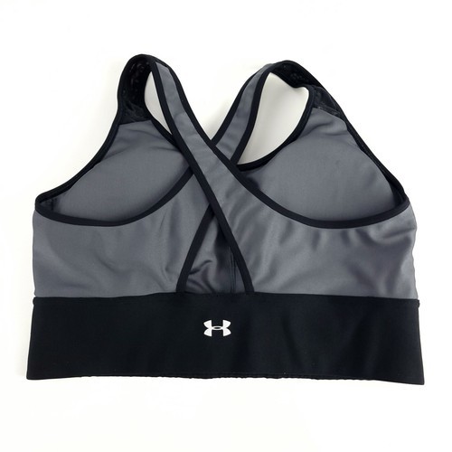 Under Armour Athletic Sports Bra w/ Criss Crossed Back Straps Black Gray Size M