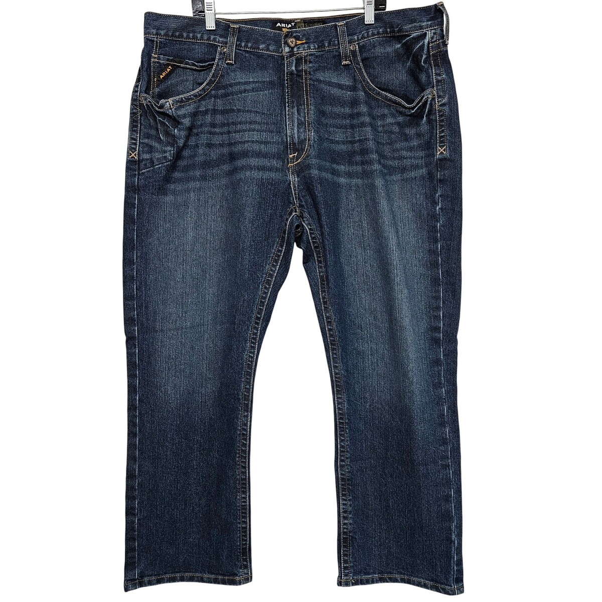 Workwear, Western, Cowboy, Rugged, Durable, Construction, Ranchwear, Stretch Denim, Dark Wash, Utility, Tradesman, Outdoor, Heavy Duty, Performance Denim, Ariat Rebar