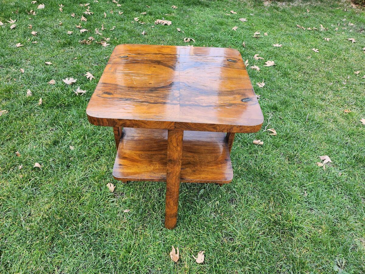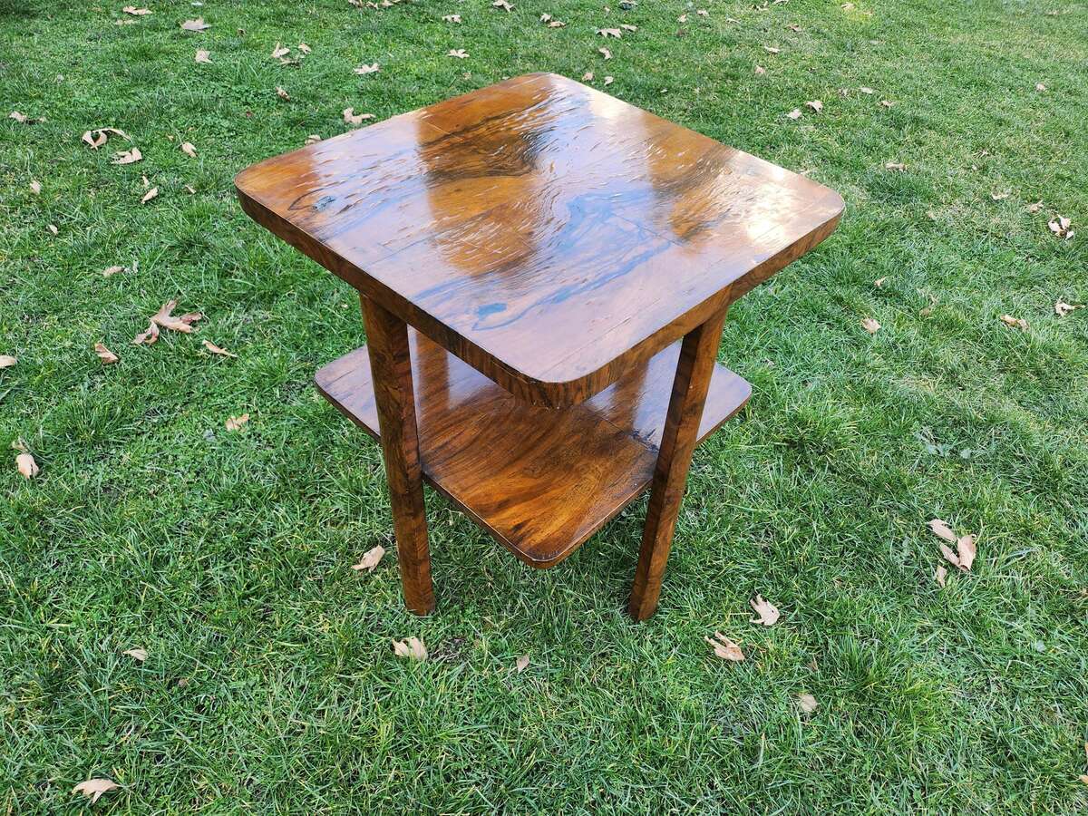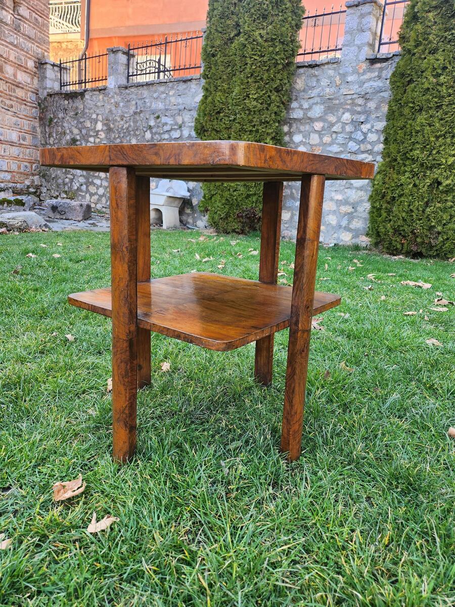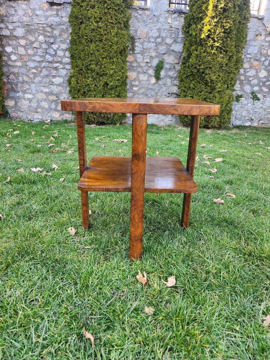 This is a lovely and elegant looking antique side table made in the middle of the XX century. The table is made of solid wood and the top of the table is made of veneered wood. The table is kept in a very good condition for its age, without damages and its in original state and condition. There might be visible small signs of use and age.