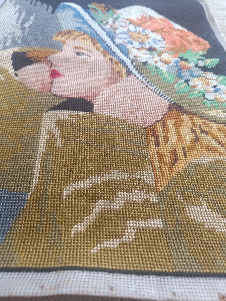 Hand embroidered gobelin needlepoint, handmade vintage tapestry, finished needle
