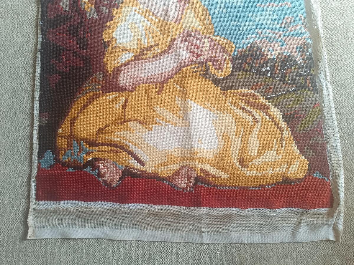 Vintage tapestry, retro wall decor needlepoint tapestry, Sitting girl handmade