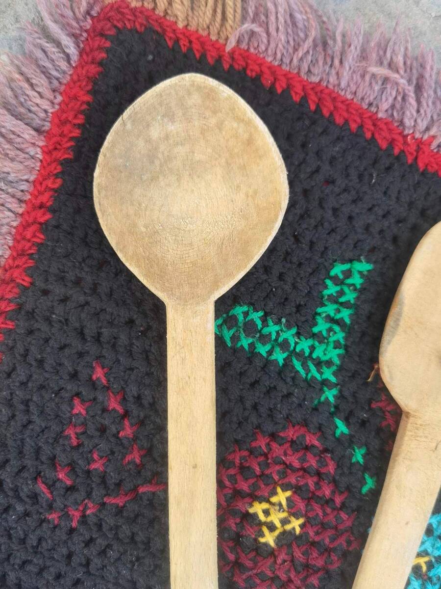 This is a lot of three hand carved wooden spoons, cooking spoons. They were made and used, but not too much used as you can see at the photos, in the middle of the first half of the XX century. They shine with its originality and primitive shine. They are lovely kitchen decor set, giving rustic and primitive upgrade to your kitchen decor.
