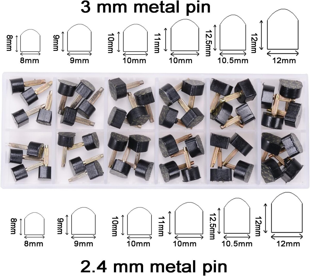 Durable Anti-Slip High Heel Replacement Tips - 24 Black Caps in 6 Sizes