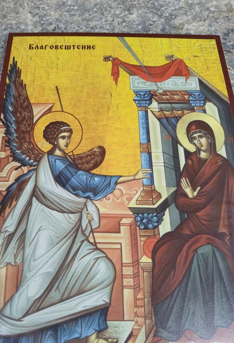 This is an Icon devoted to Blagovestenie also known as Blagovec an Orthodox Cristian holiday always celebrated on April the 7th. It is one of the holiday devoted to Presveta Bogorodica. This is the day when Bogorodica became the God's mother it is also known as Mother's day by the Orthodox Christians.