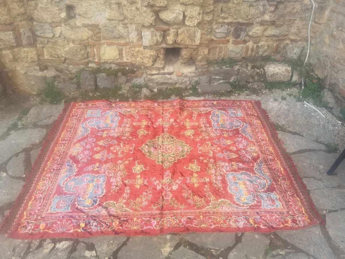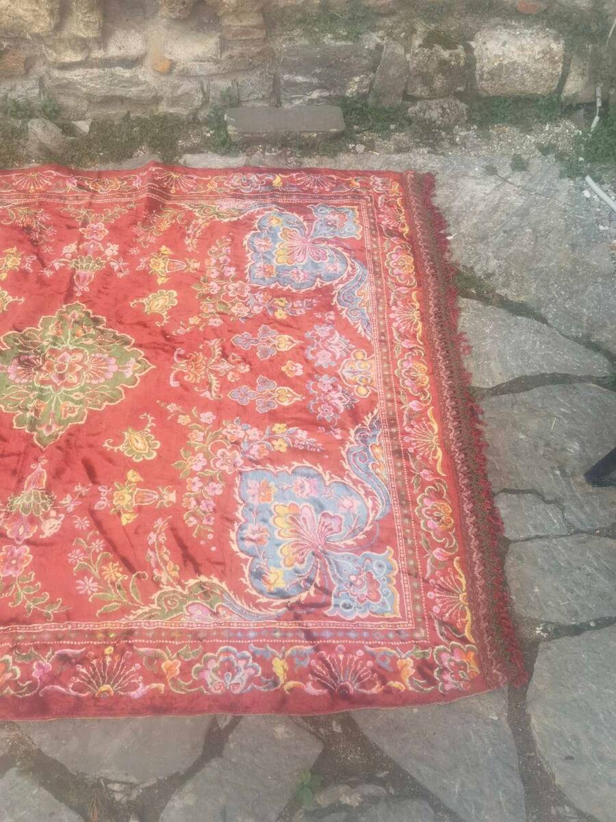 This is a vintage floral bedspread, made in the 1970's. It is a high quality and heavy velvet bedspread made of high quality Italian velvet. It is in mainly red color and floral pattern, giving extra colors and bohemian charm in your home decor. It is a large size bedspread with dimensions of 220 x 180 cm.