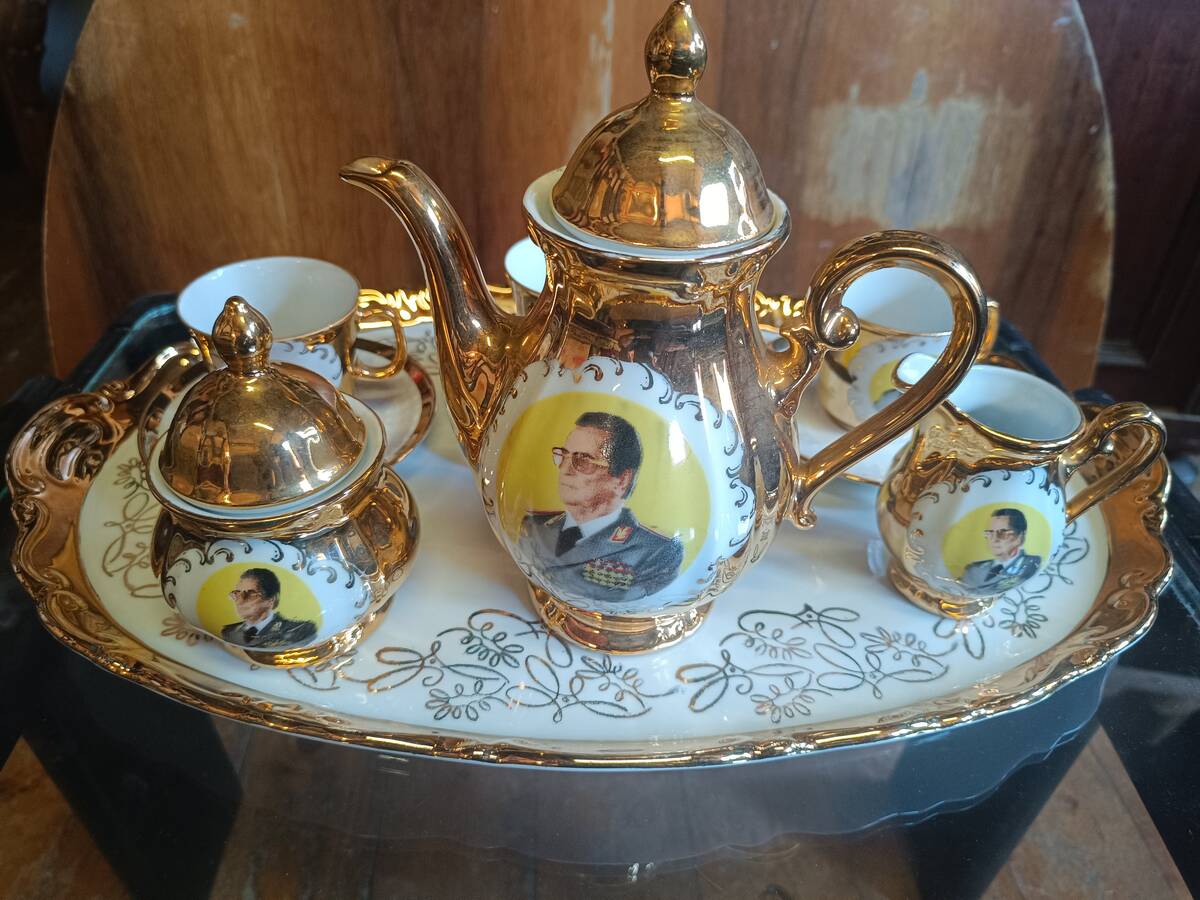 This is a rare and limited edition of a coffee/tea set made by the German porcelain producer Bavaria. It is a Royal porcelain edition, 24 carats gold plated made in the 1980's made in honor of the lifelong leader of Yugoslavia Josip Broz Tito. Tito is the only world's leader and politician that Bavaria honored with its limited edition collectible porcelain set.