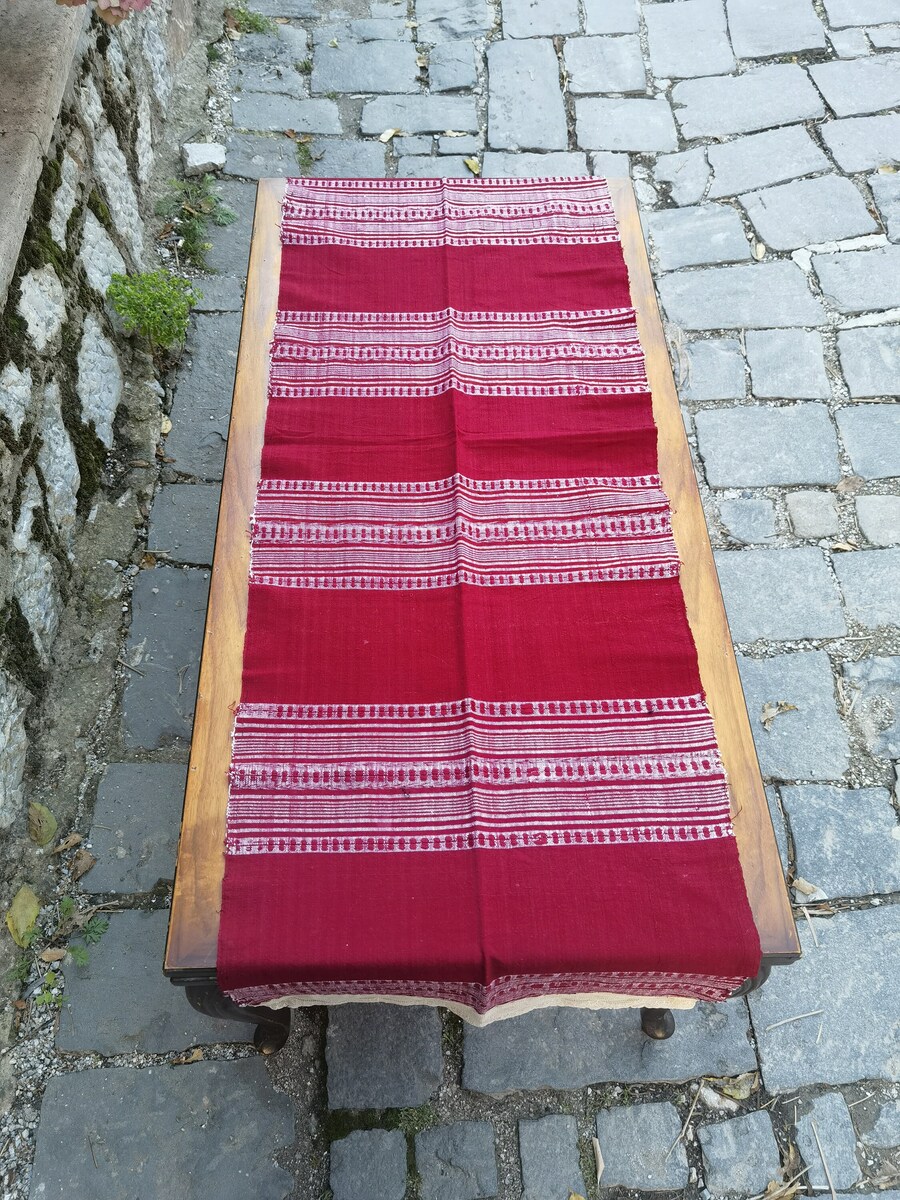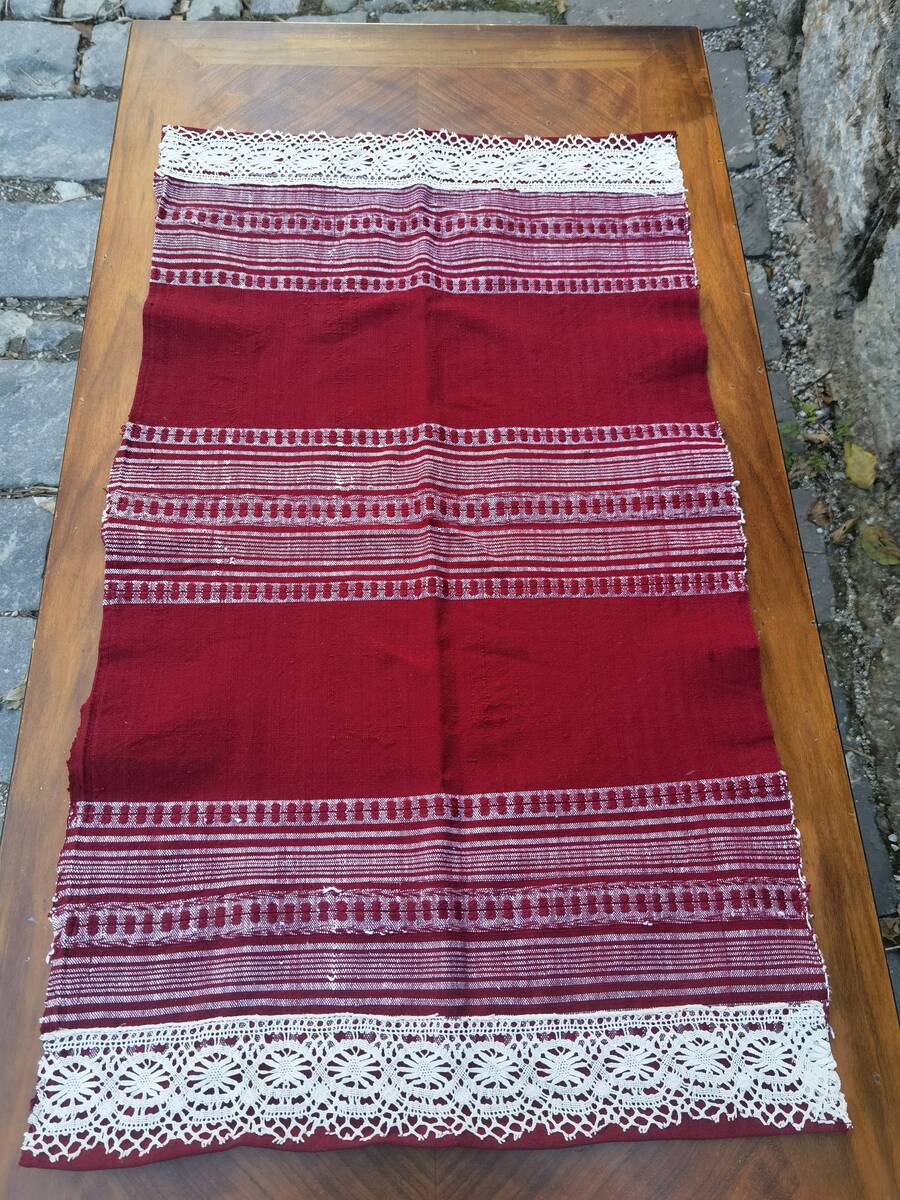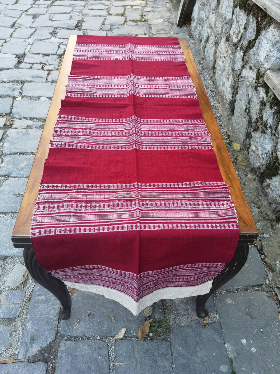 Cotton table runner lace decorated, antique cotton hand woven on a loom runner