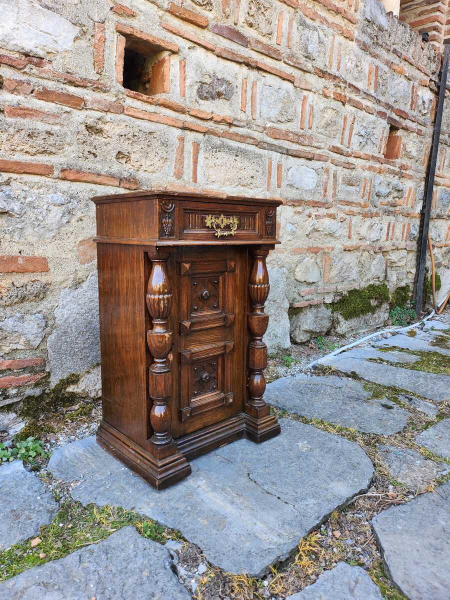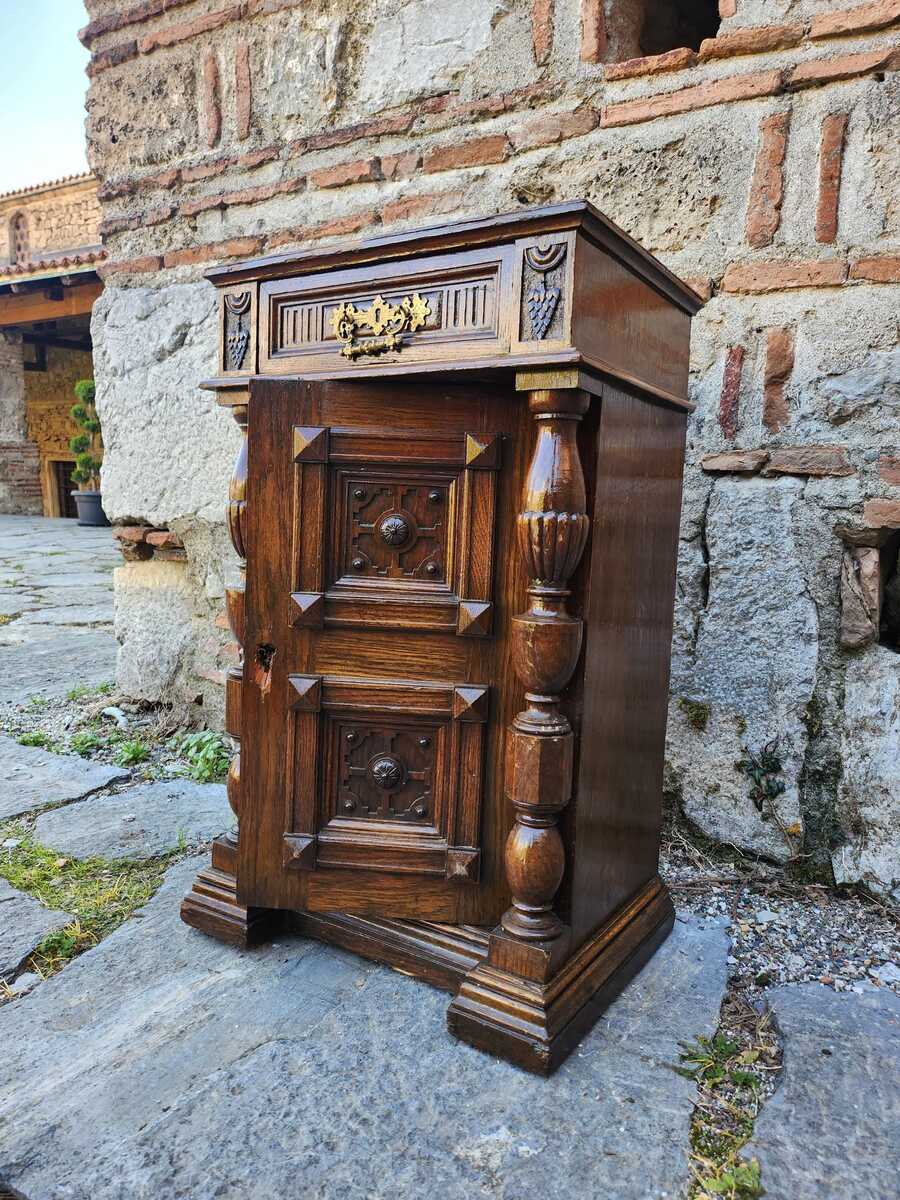 French pedestal cabinet, Antique French end table Renaissance design, 19 century