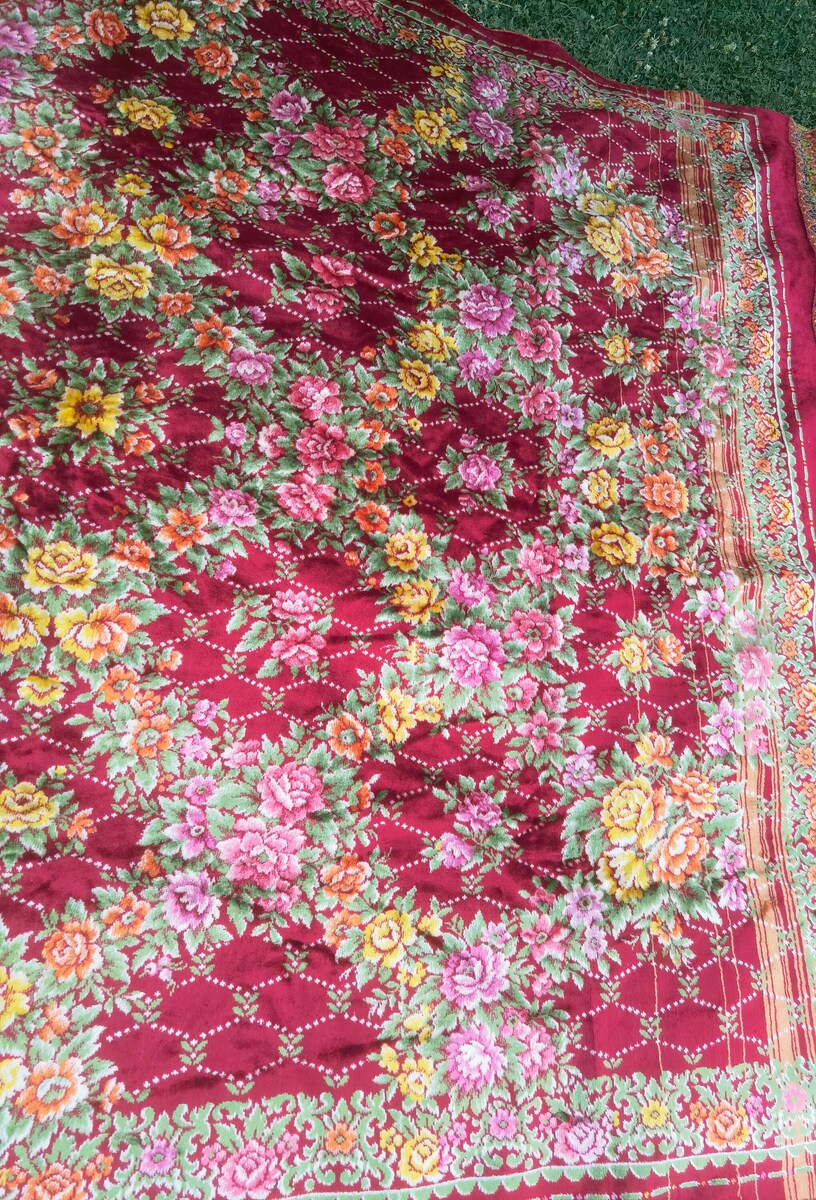 Italian velvet bedspread, vintage Italian floral bed cover