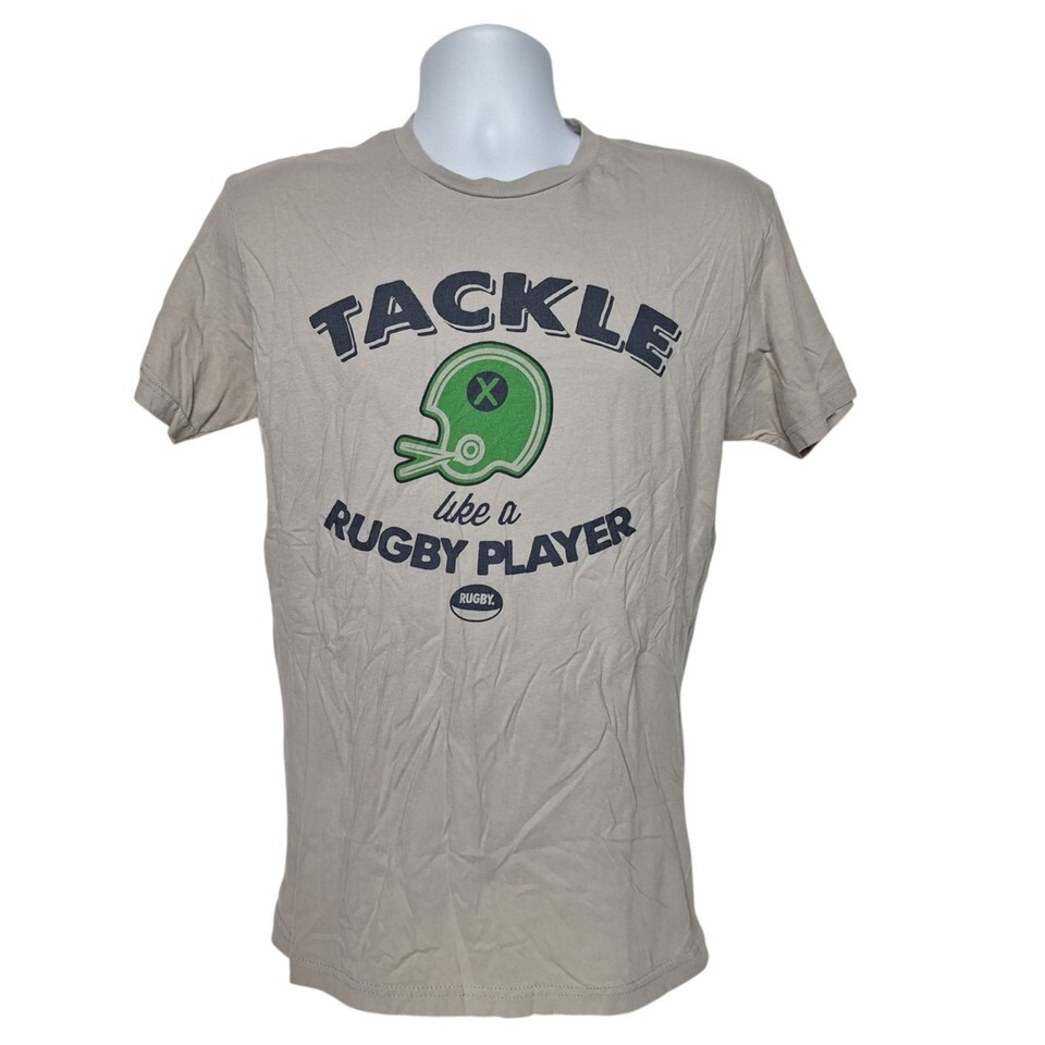 Pre-loved Partner TACKLE Like a Rugby Player Mens Med Graphic Tee Gray Sport...