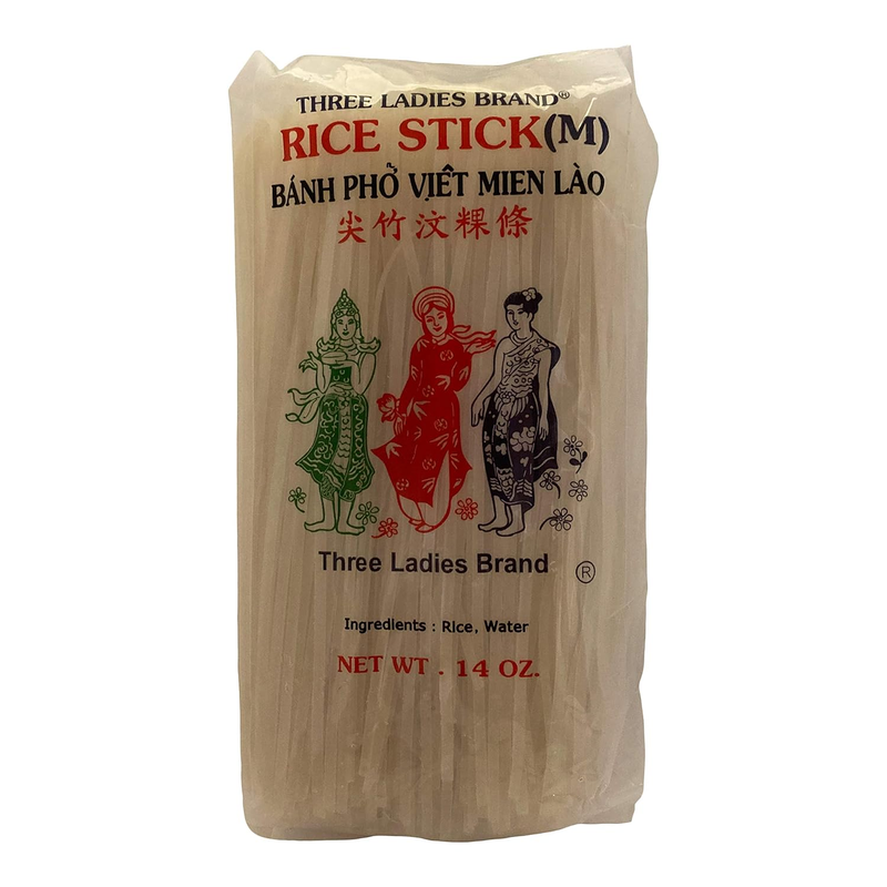 Three Ladies Brand Rice Stick originates from Thailand. Each bag contains 14 oz. Sold in pack of three bags.