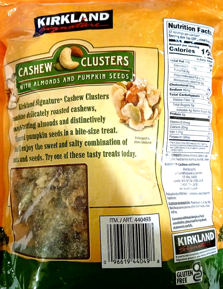 Kirkland Signature Cashew Clusters with Almonds & Pumpkin Seeds 32Oz EXP 10/2026