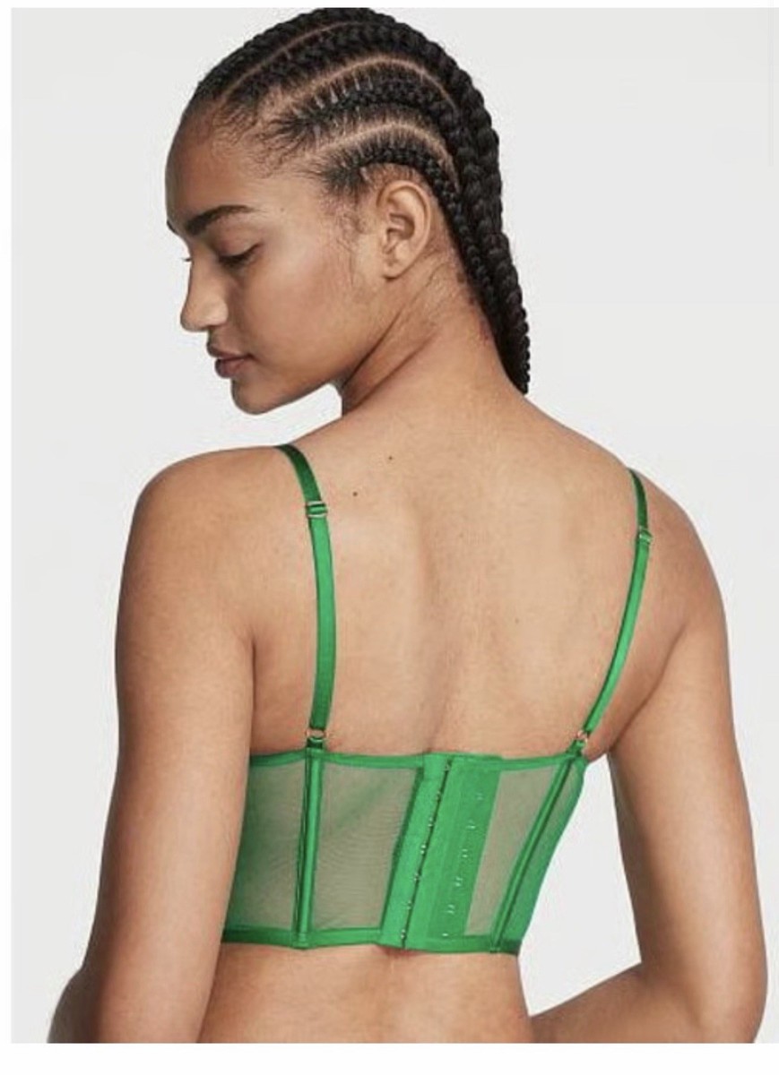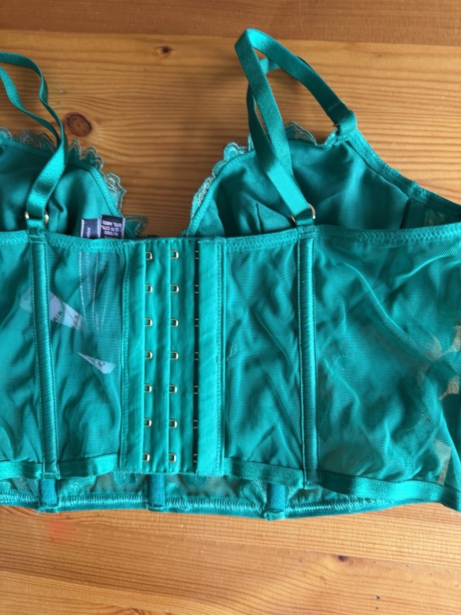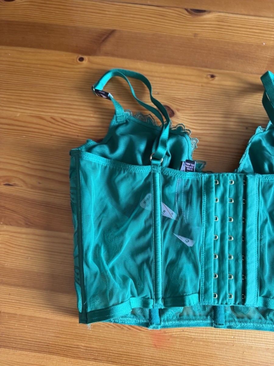 Victoria's Secret Verdant Green Ziggy Glam Embroidery Corset Top Bra Large NWT