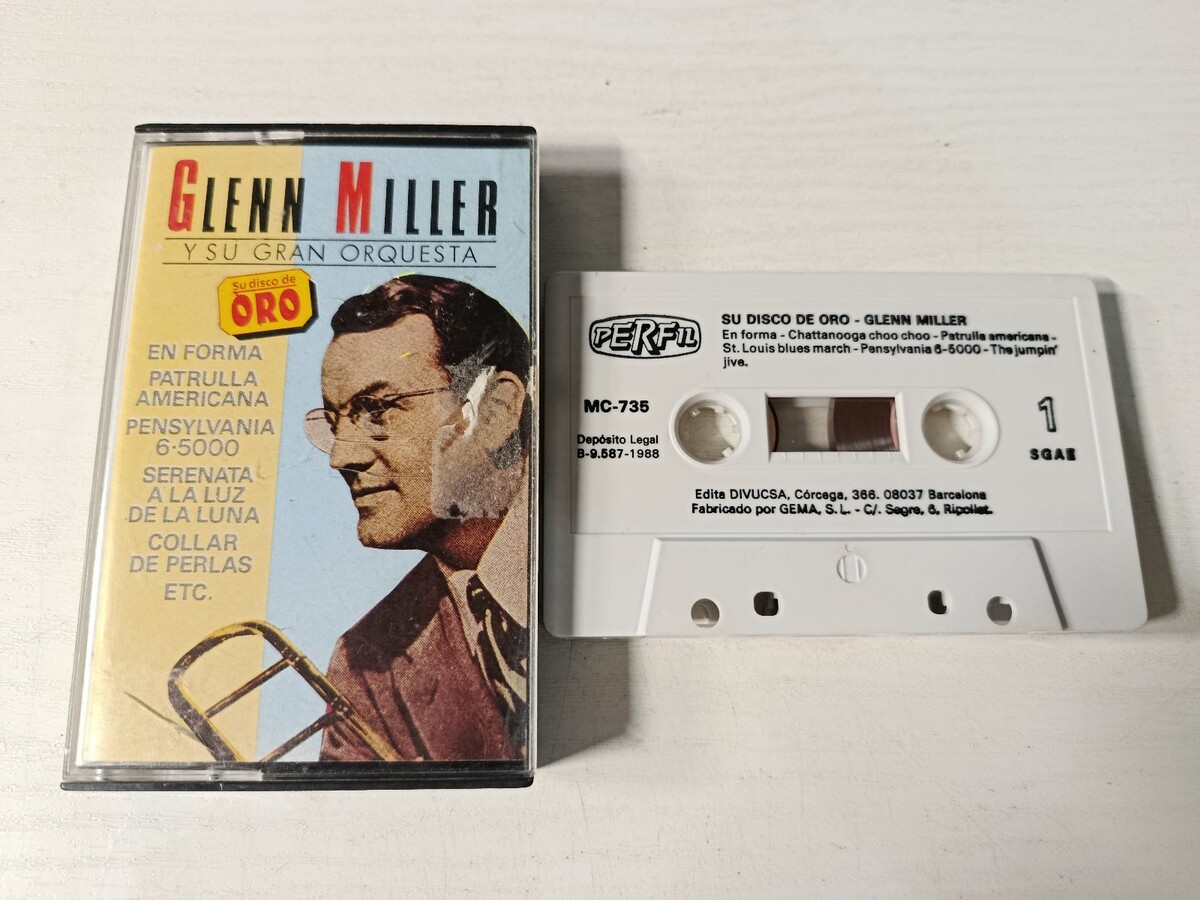 de Spanish edition del Perfil label, distributed by Divucsa. Includes classic de Miller recordings de licensesde Charlie Recordsde 1985. The cassette has clear printing on a white label, manufactured by GEMA SL in Ripollet. The case retains el original design con complete listingde themes on both sides. sonido coming de historical de and big band masters.