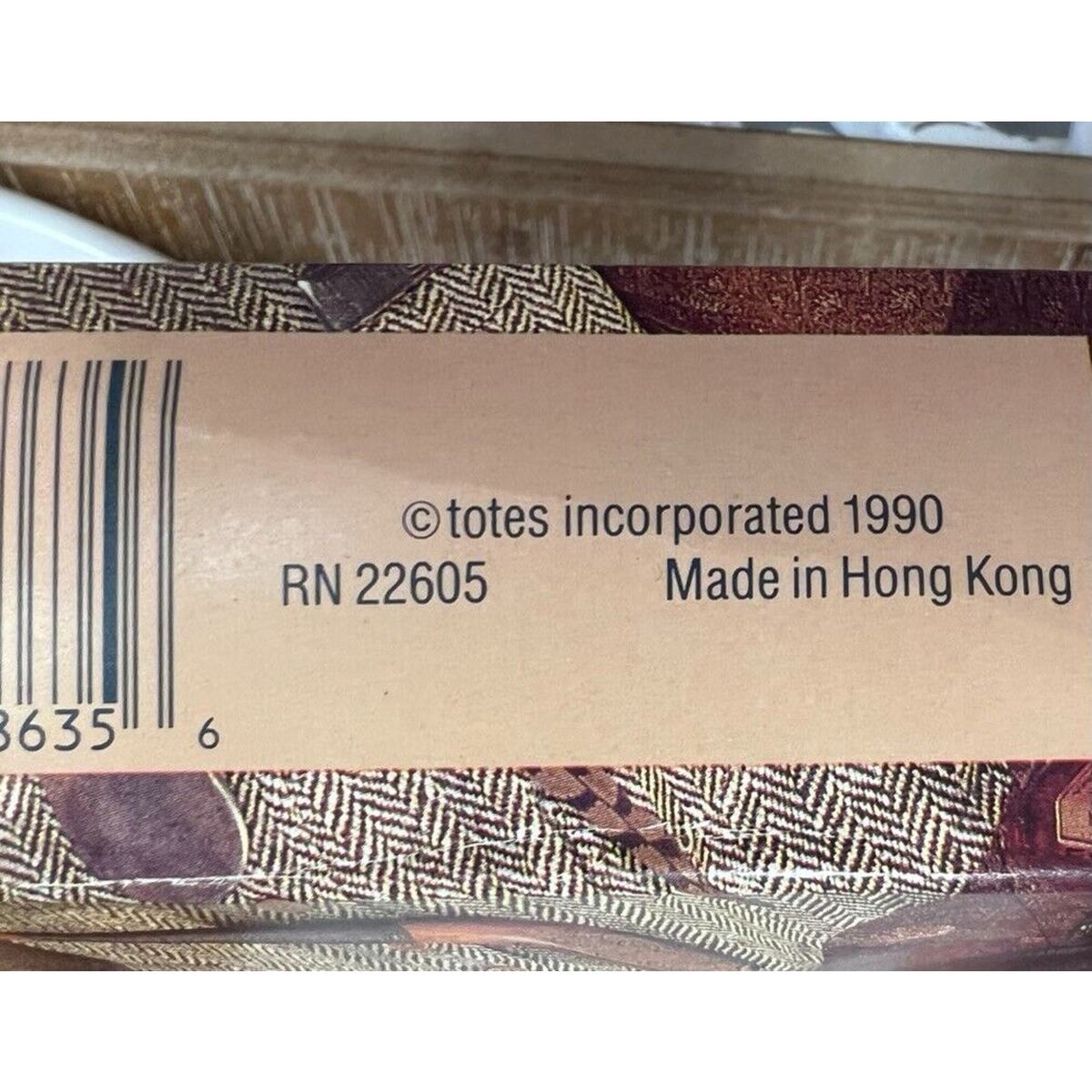 Totes Incorporated is best known for umbrellas and weather accessories, but during the late 1980s?1990s the company also produced cold-weather accessories including caps and scarves. This example reflects the continued popularity of heritage British country style that remained fashionable during that period.