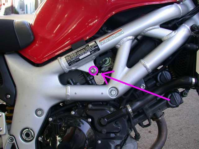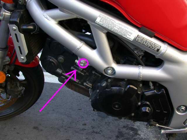 The frame sliders are to be mounted to your upper engine mount bolts. Refer to your service manual before performing this installation. Before beginning, make sure pinch bolts are tight to prevent any engine movement. The right side mounts to the engine bracket under the vin plate. The leftside mounts to the engine bracket forward of the large through bolt. Remove right side engine mount bolt and install supplied bolt. Repeat process to left side with supplied bolt. DO NOT OVERTIGHTEN. Always torque bolts to factory specifications.