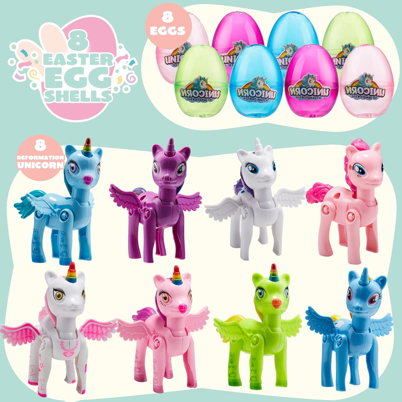 8 Pack Pre Filled 3.5" Easter Egg with Unicorn Deformation Toys