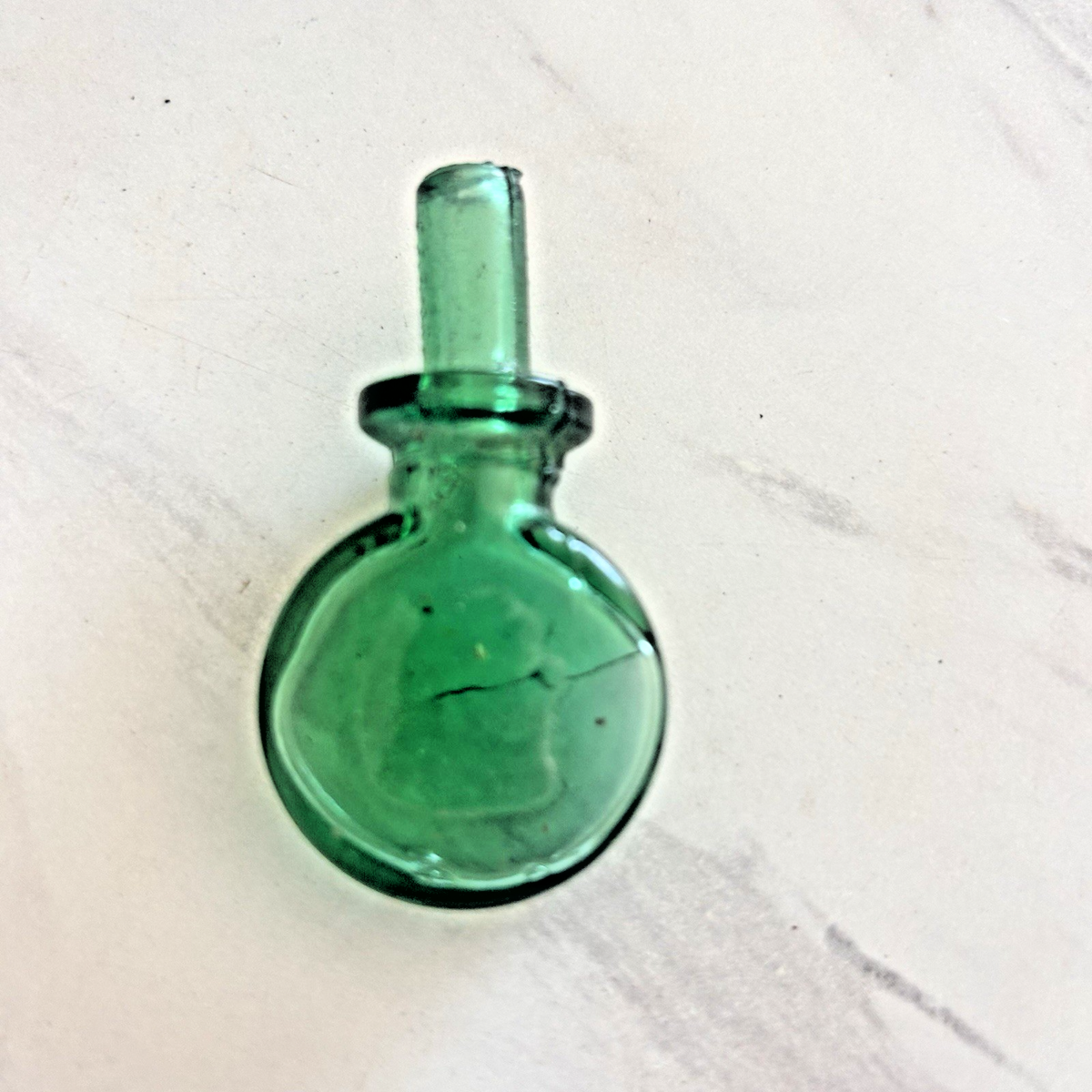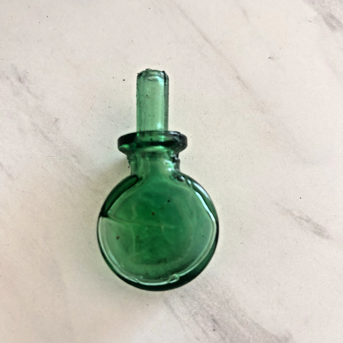 Vintage Hand Blown Miniature Apothecary Bottle Emerald Green Blanko Glass 1960s