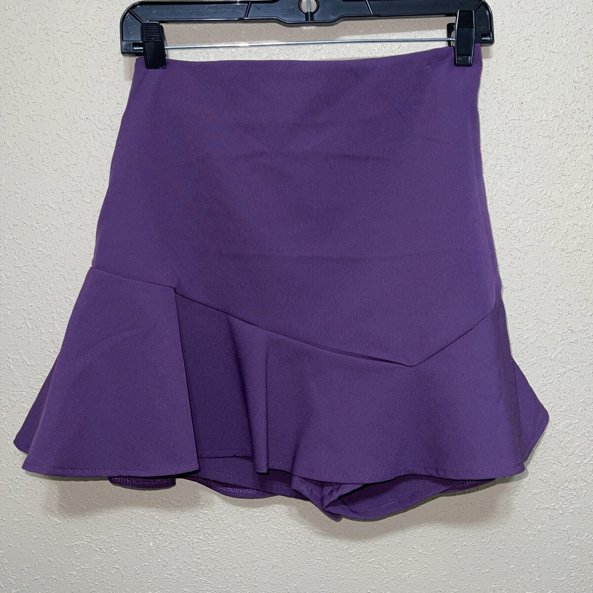 Zara dark eggplant purple belted ruffle skater a line skort (skirt with shorts underneath).