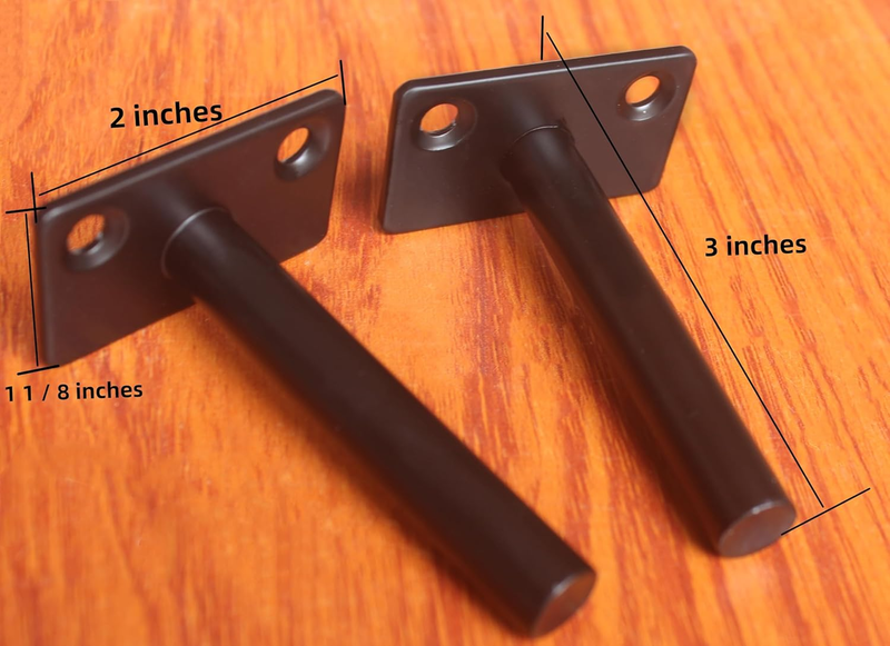 Size - Rod is 3 inches long with 12mm diameter. Backplate is 2 inches wide and 1-1/8 inches height. Our hidden shelf brackets hardware pack includes 8 x metal floating brackets, 16 x heavy-duty screws, 16 x drywall anchors