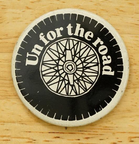 Vintage Pinback Button UN For The Road 7UP Uncola Soda Pop Advertising