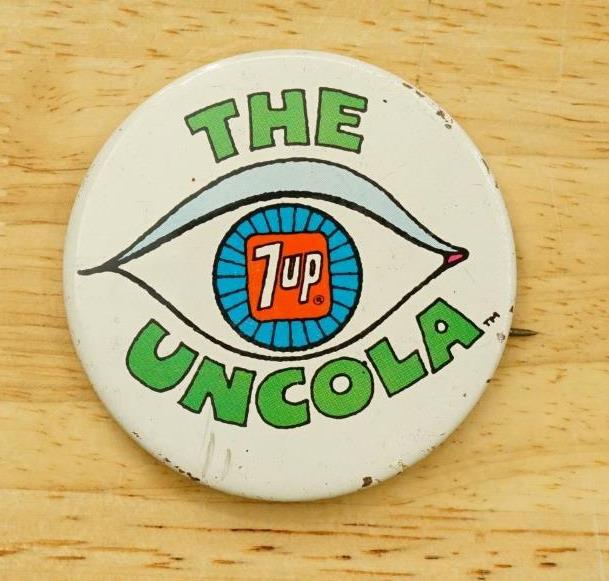 Vintage Metal Pinback Button 7UP Eye Soda Pop The Uncola Advertising