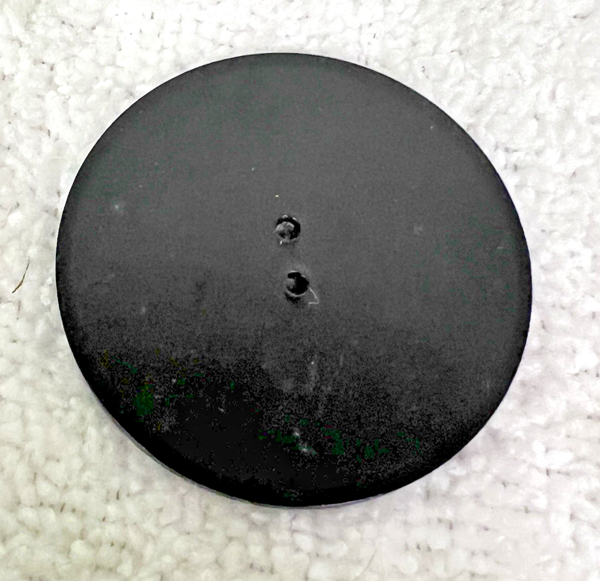 Vintage Large Round Carved Black Cape Coat Button Swirling Arc Circles 1 3/4". Very good used condition vintage black swirling partial circles arcs center design plastic button, measures approx. 1 3/4" wide, some age scratching on back. See pictures.
