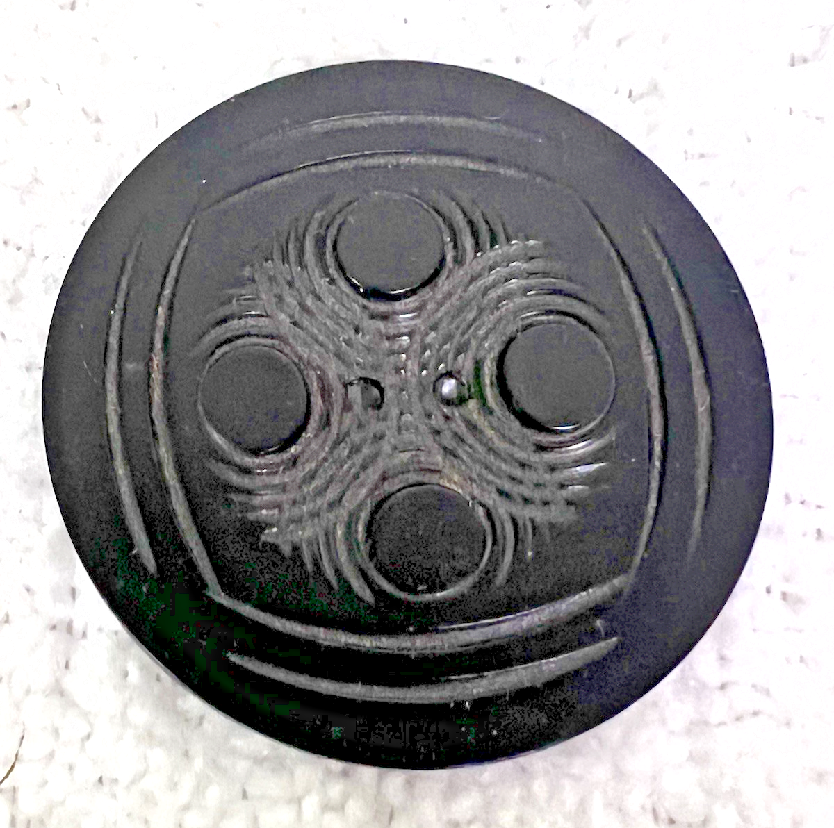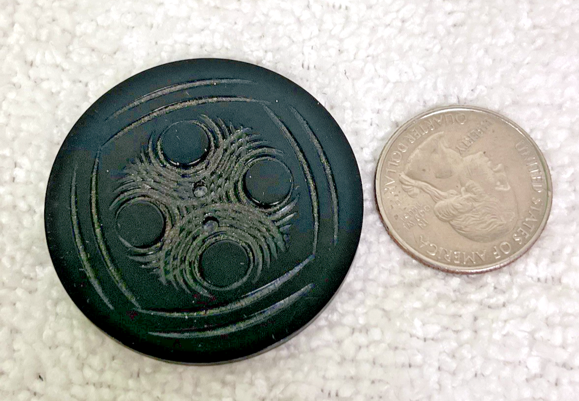 Vintage Large Round Carved Black Cape Coat Button Swirling Arc Circles 1 3/4"