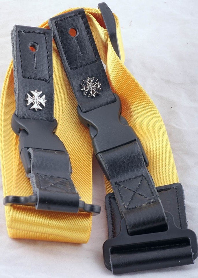 Mugig Adjustable Guitar Strap – Black Nylon, Maltese Cross Detail