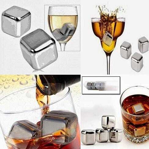 Party Time Drink Mixer recipe that even James will love.Mix your favorite cocktails in the cocktail shaker, give it a good shake (do not stir). Now take out your freezer storage tray from the fridge.Pick up a few STEEL CHILLERS with the tong and throw them into the deep Champagne goblets.Pour your cocktail and garnish with Lemon peels or Olives. Got it? Cheers!Enjoy the same flavor till the last drop, your drink will not be diluted now as you have used STEEL CHILLERS instead of melting ice!Reuse the Steel Chillers every time for Margaritas, Sangrias, Mojitos and Juices and never worry about your choice of beverage watering down again.? 6 Stainless steel food grade cubes.? A Freezer Tray to store and serve the steel cubes.? A Stainless Steel Serving Tong.? Very ideal for Entertaining.