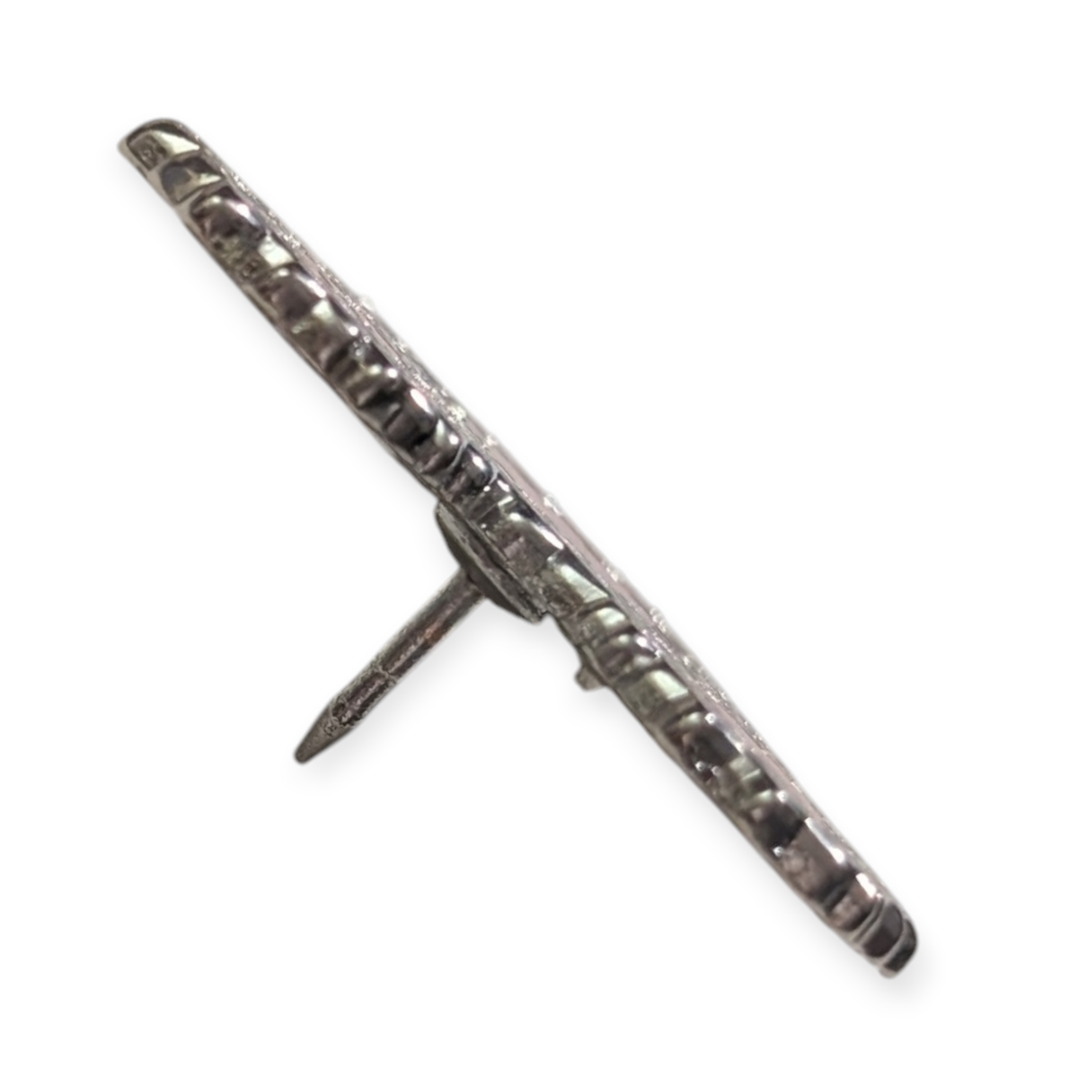 • Sculpted metal with enamel, and finished with a rubber back to keep secure.