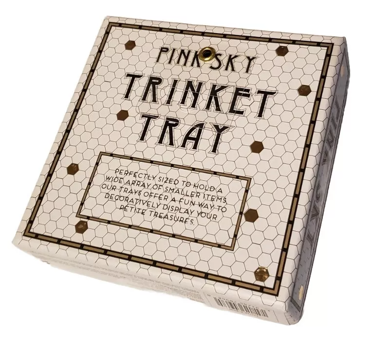 Pink Sky Monogram "E" Trinket Tray Ring Dish Holder Bee Honey Comb Accents