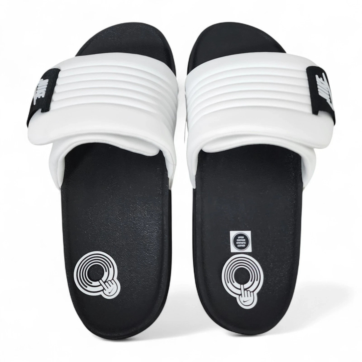 The Nike Offcourt Adjust Men # 15 Slides in White Black are stylish and comfortable slip-on sandals perfect for travel, activewear, and casual occasions. DQ9624 100.